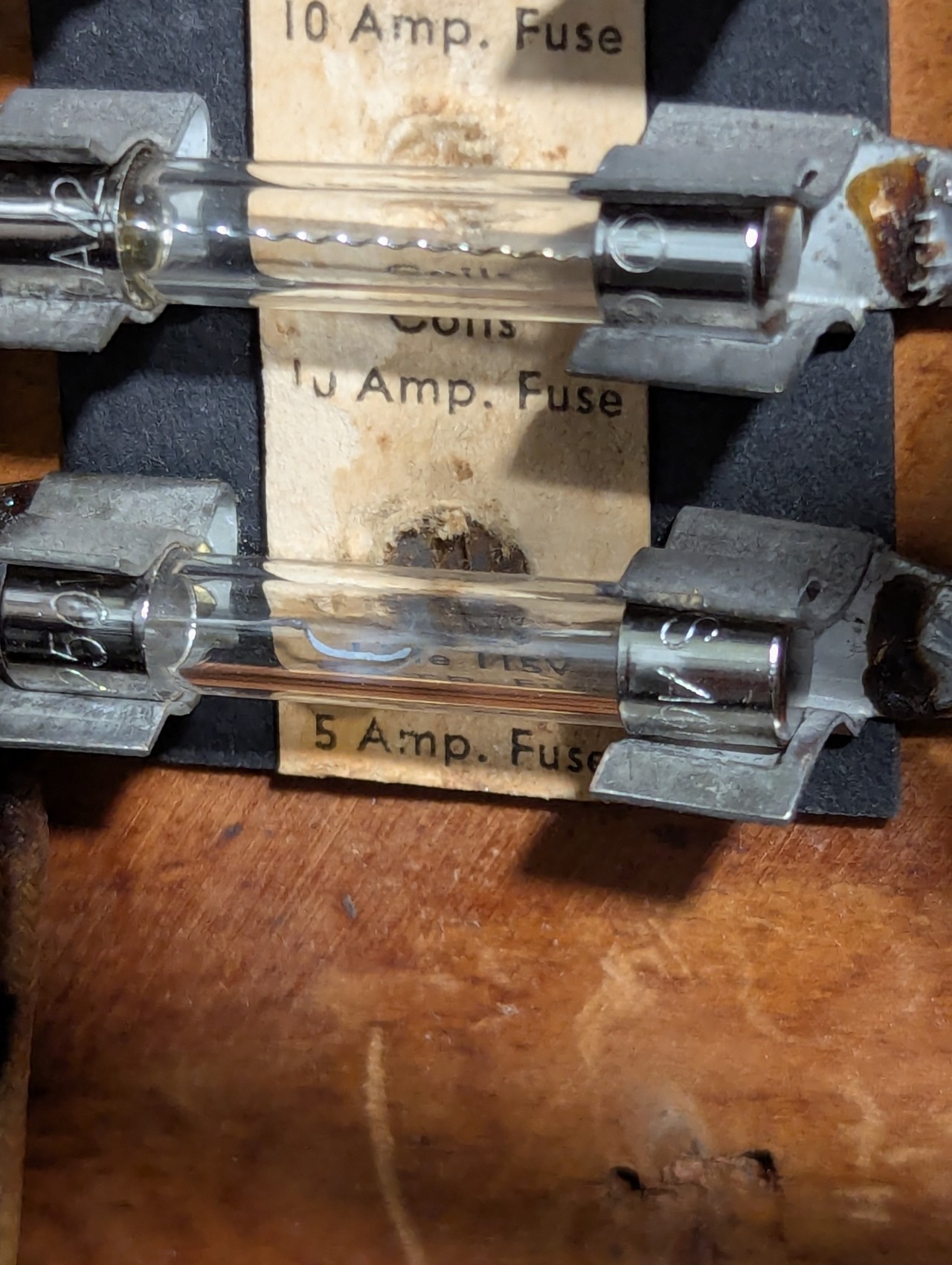 Recall that, last time, I noted that entirely the wrong fuses were installed in the fuse holder, especially that a 20 amp fuse was installed for the line voltage, when it should have been a 5 amp?