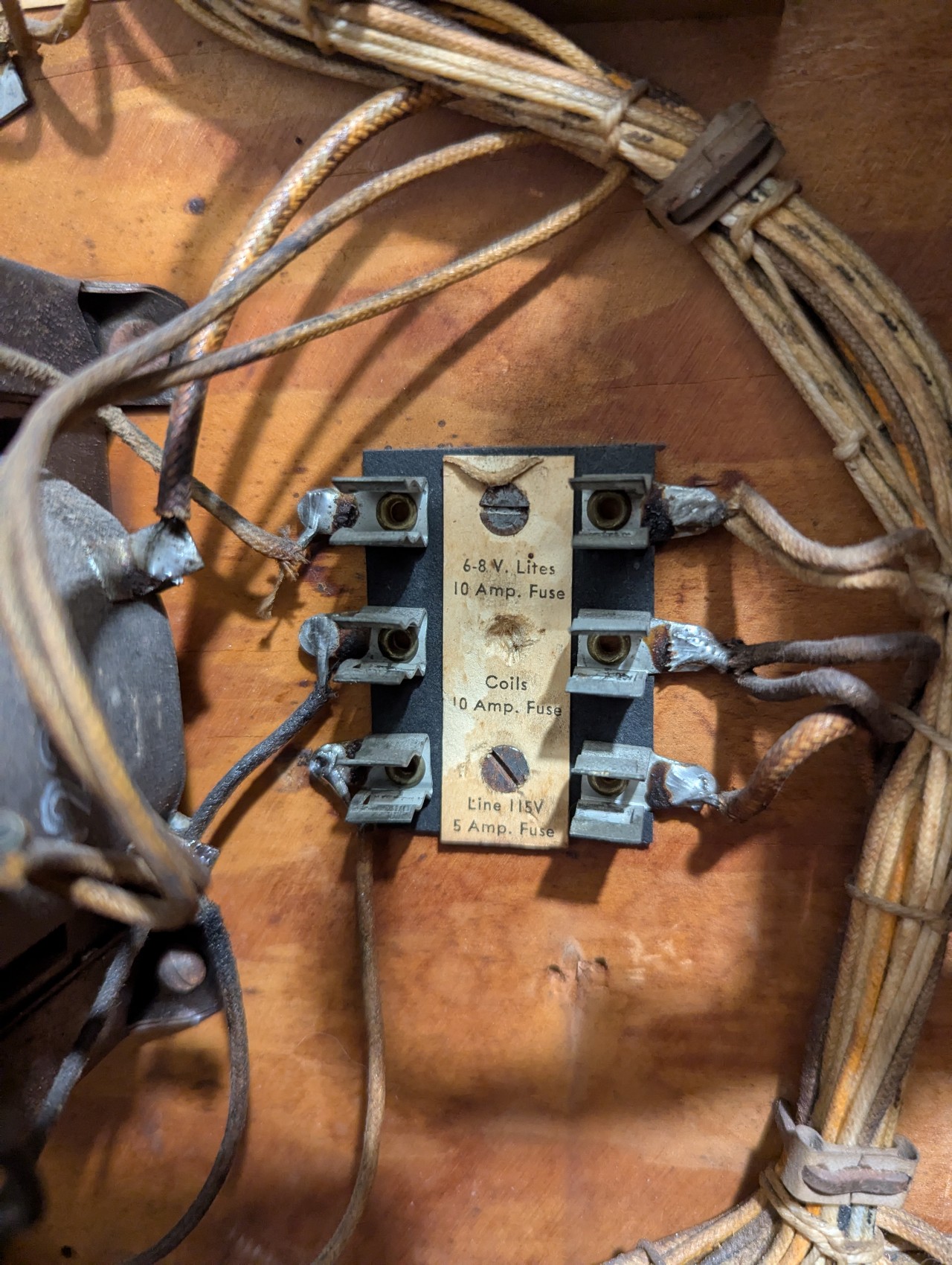 Recall that, last time, I noted that entirely the wrong fuses were installed in the fuse holder, especially that a 20 amp fuse was installed for the line voltage, when it should have been a 5 amp?
